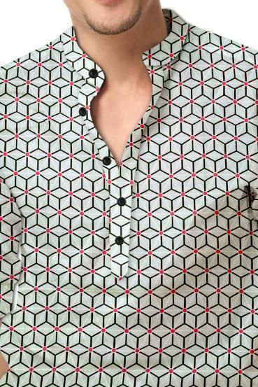 Men’s Multicolor Printed Cotton Casual Shirt – Full Sleeves, Mandarin Spread Collar, Festive & Daily Wear