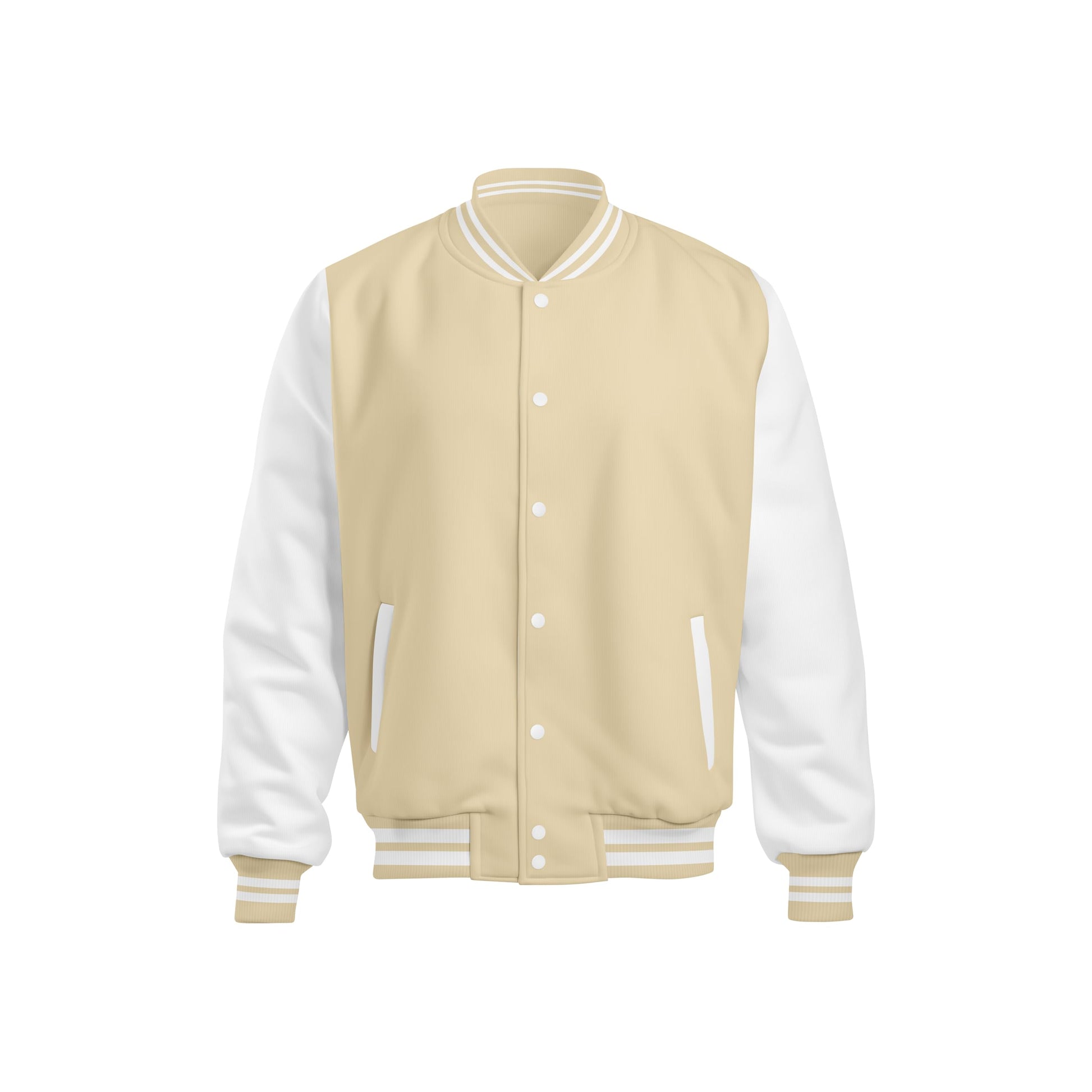 Nail effortless cool in this beige varsity jacket - a lightweight essential that works year-round. Crafted from soft, breathable cotton fabric with quality buttons, this slim-fit bomber delivers comfort without compromise. Whether you're rocking it solo or layering up, the versatile neutral shade pairs perfectly with everything from sneakers to boots and jeans to tees. Designed for both men and women, it's your go-to for casual hangouts, dates, campus vibes, sports events, or outdoor adventures. Light enough for warmer days, warm enough when temperatures dip - this is the jacket that adapts to your lifestyle. Simple, stylish, and ready for whatever comes next.