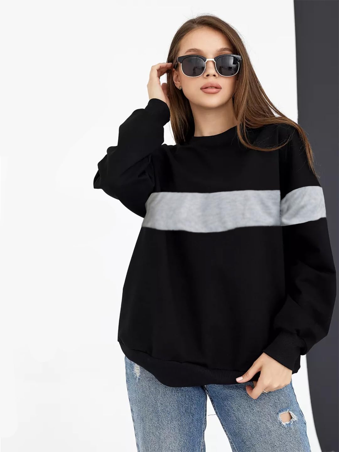 Meet your new wardrobe essential—an oversized black sweatshirt designed for those who love comfort with a contemporary edge. This loose-fit piece features a cozy round neckline and full sleeves in a trendy loop knit fabric that's perfect for layering or wearing solo. Whether you're channeling effortless cool or embracing the relaxed aesthetic, this sweatshirt adapts to your style story. Ideal for casual days, weekend hangouts, or whenever you want to feel wrapped in comfort without sacrificing that fashion-forward vibe.