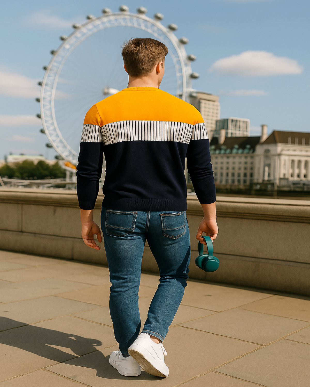Whether you’re hitting campus, chilling with friends, or stepping out for a casual evening, this tee adds just the right mix of attitude and ease. The striking yellow and blue combo, finished with crisp white stripes, gives you a fresh look that stands out without trying too hard. Layer it under a jacket or wear it solo — it’s built to keep you looking sharp and feeling comfy all day.