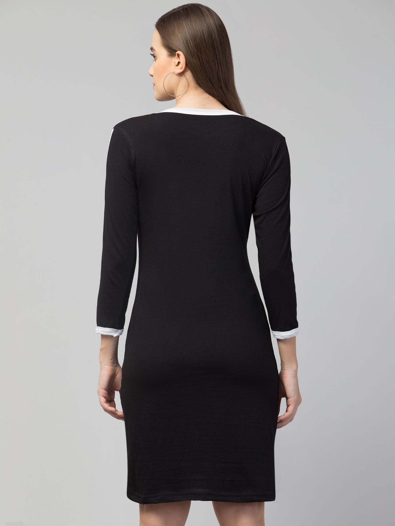 Women's Cotton Black Graphic Print Short Sleeves T-Shirt Dress