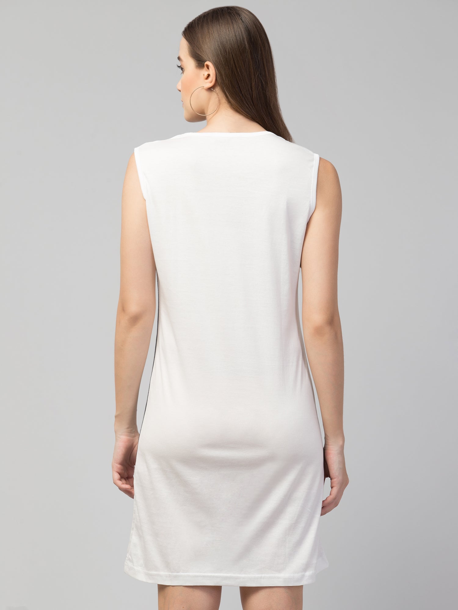 Women's Cotton White Graphic Print Short Sleeveless T-Shirt Dress – Casual Summer Outfit